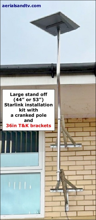 – Heavy duty 6ft x 1.5 inch x 1.6mm (16G) cranked alloy pole for maximum strength and minimum movement of the Starlink dish.